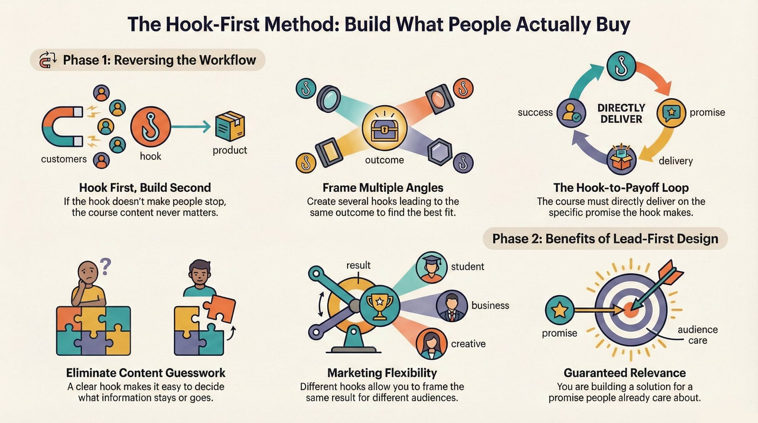 (A clean, step-by-step system used to quickly turn a validated hook into a course)